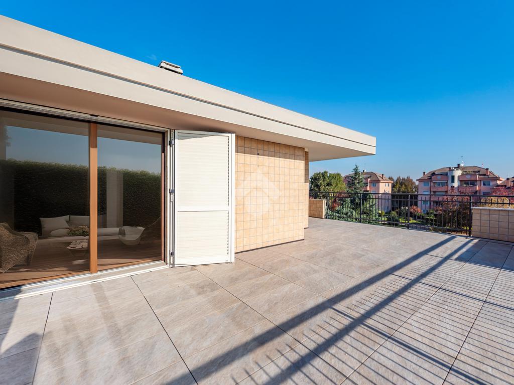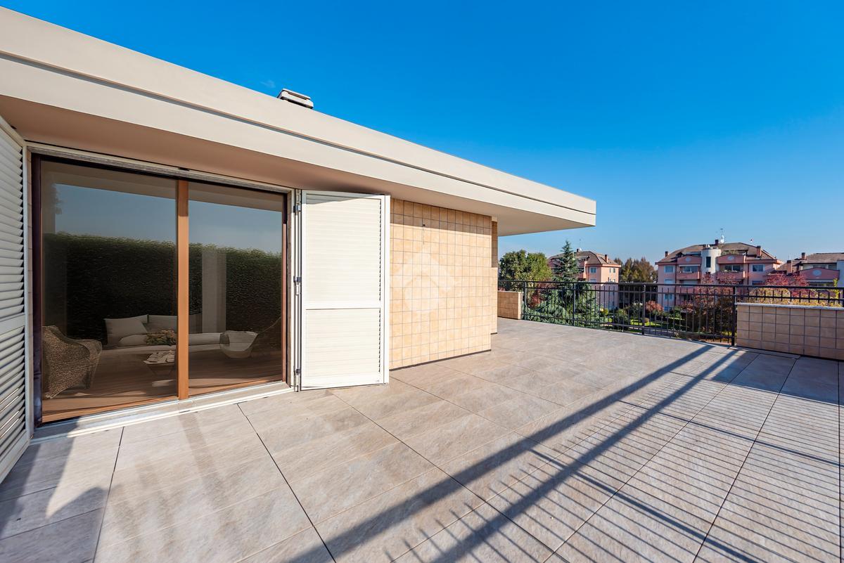 Dalla zona giono si accede al primo terrazzo loggiato di 41 mq.