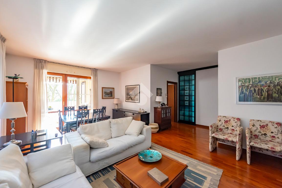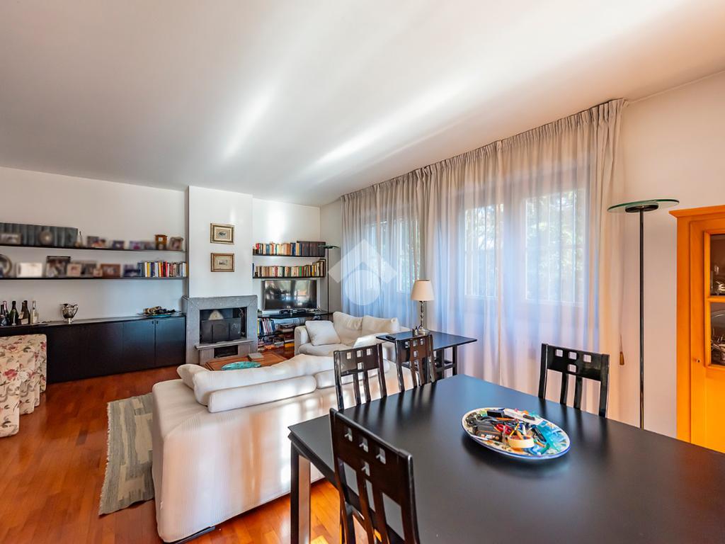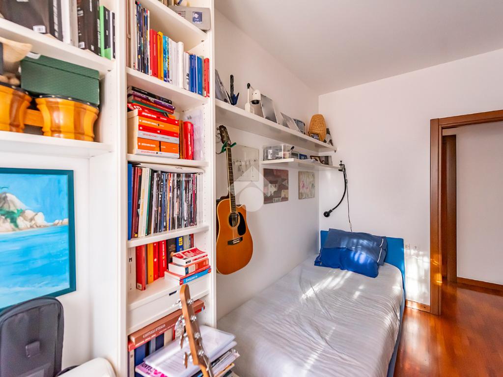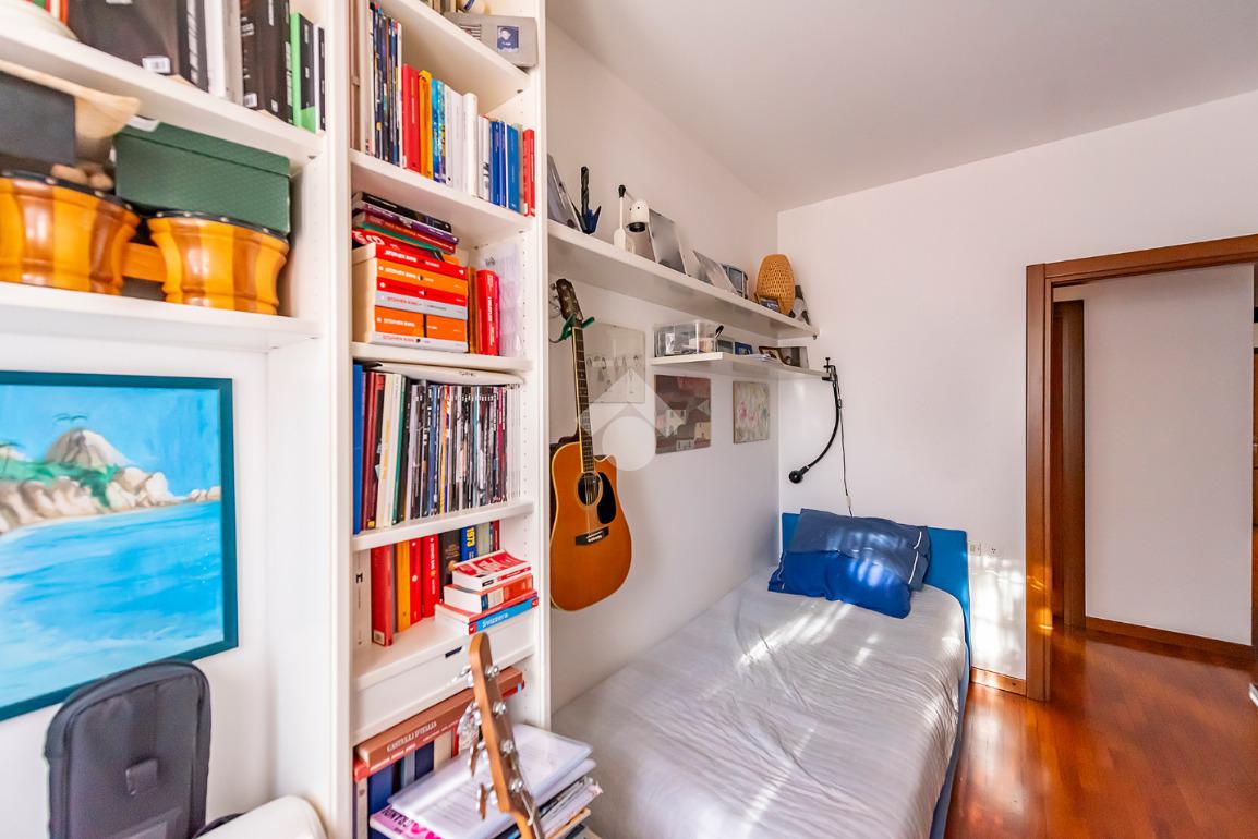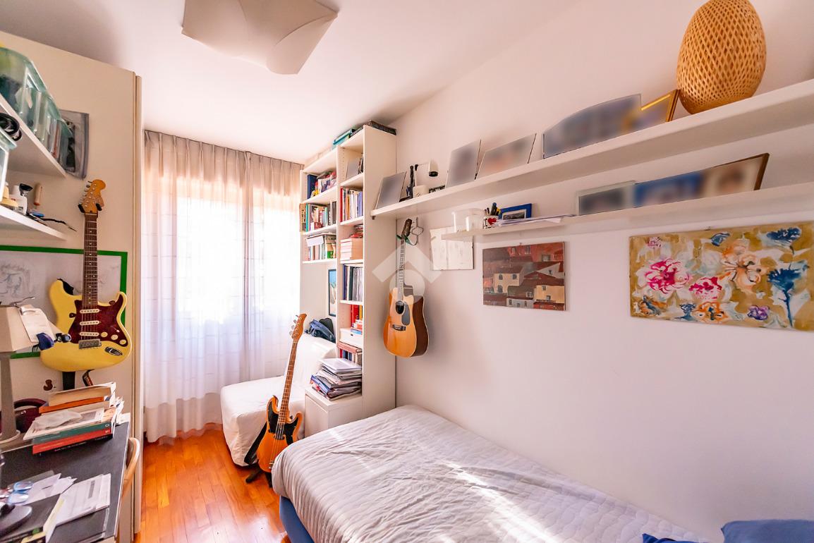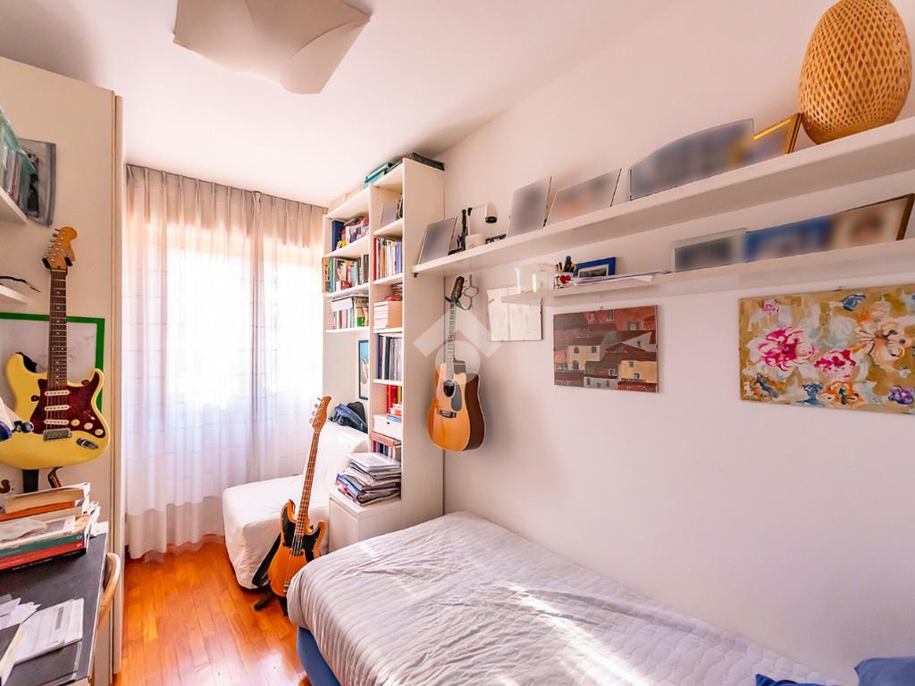 L'appartamento presenta un grande salone con camino, inondato di luce naturale grazie all’esposizione angolare, alle ampie finestre e alla porta finestra che conduce al terrazzo: uno spazio ideale per pranzi all’aperto, relax o momenti conviviali.