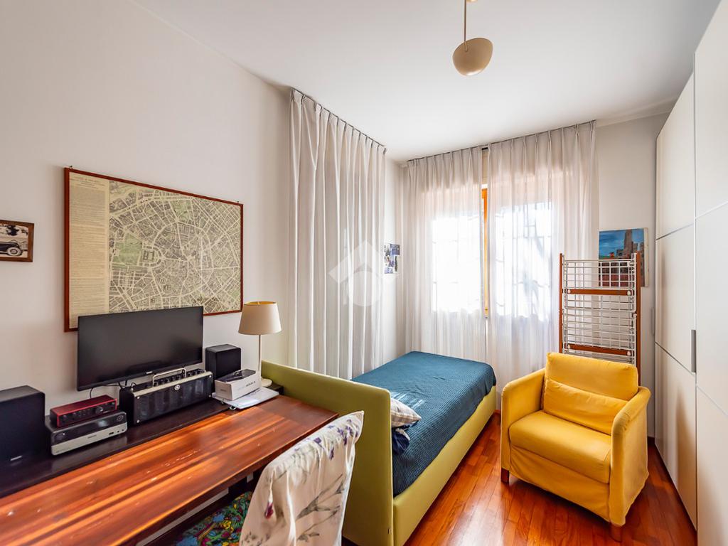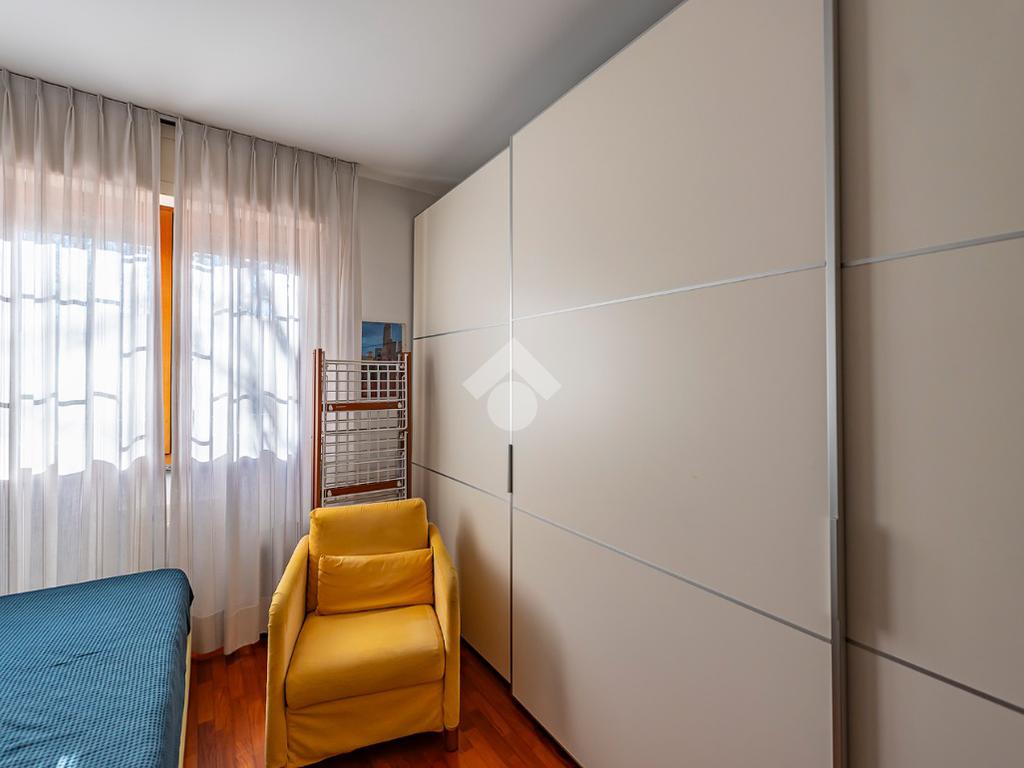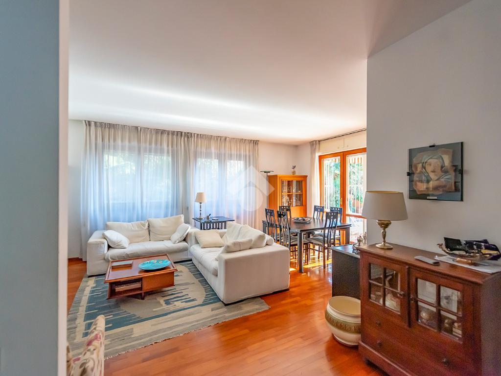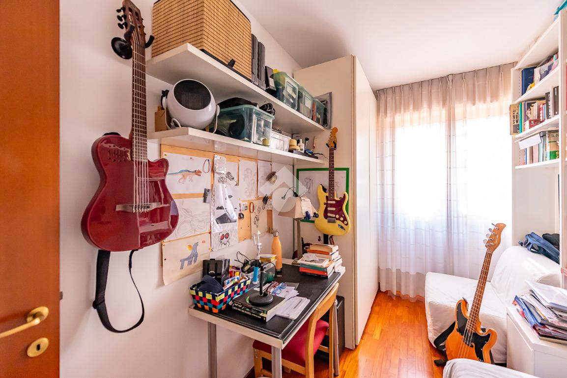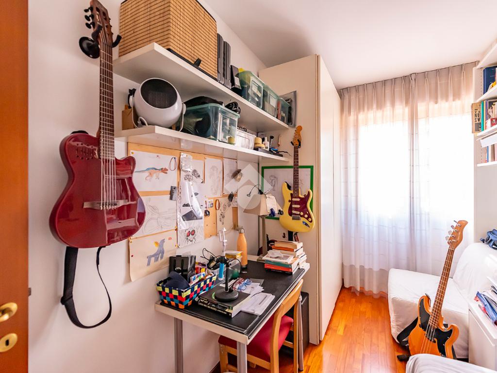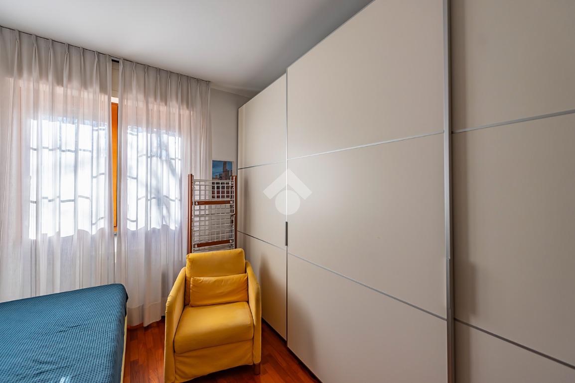 L'appartamento presenta un grande salone con camino, inondato di luce naturale grazie all’esposizione angolare, alle ampie finestre e alla porta finestra che conduce al terrazzo: uno spazio ideale per pranzi all’aperto, relax o momenti conviviali.