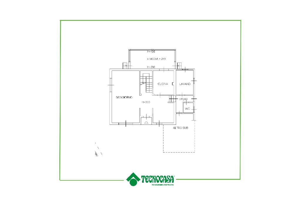 Lasciando il soggiorno alle spalle, scendendo tre gradini, si trova la zona lavanderia con bagno finestrato dotato di doccia. Dalla lavanderia si accede direttamente al box per due auto e cantina sottostante.