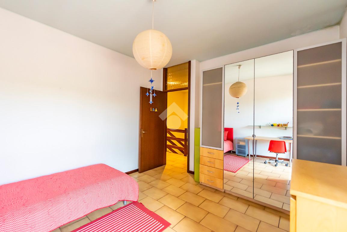 Salendo al primo piano, la zona notte offre una camera matrimoniale di ampia metratura con balcone privato affacciato sul verde, due camerette spaziose (una delle quali con secondo balcone privato) e due bagni finestrati, entrambi comodi e funzionali.