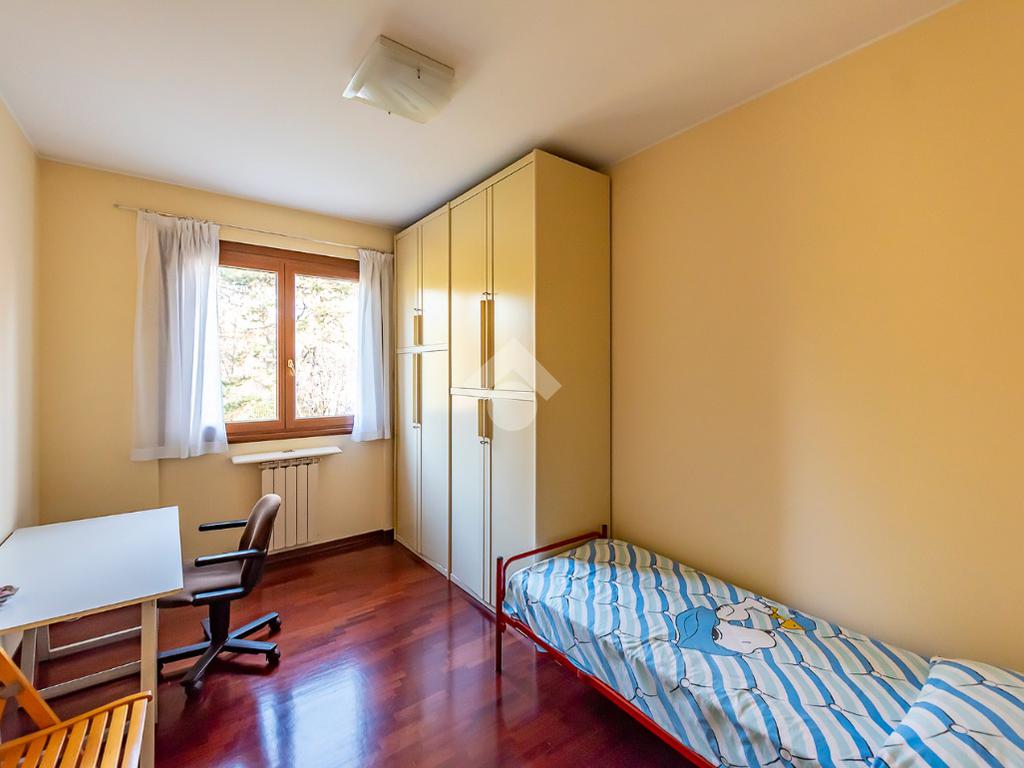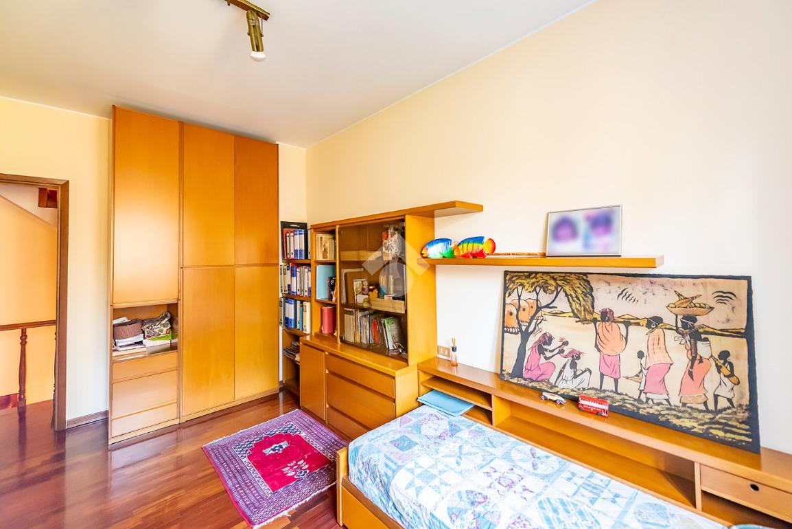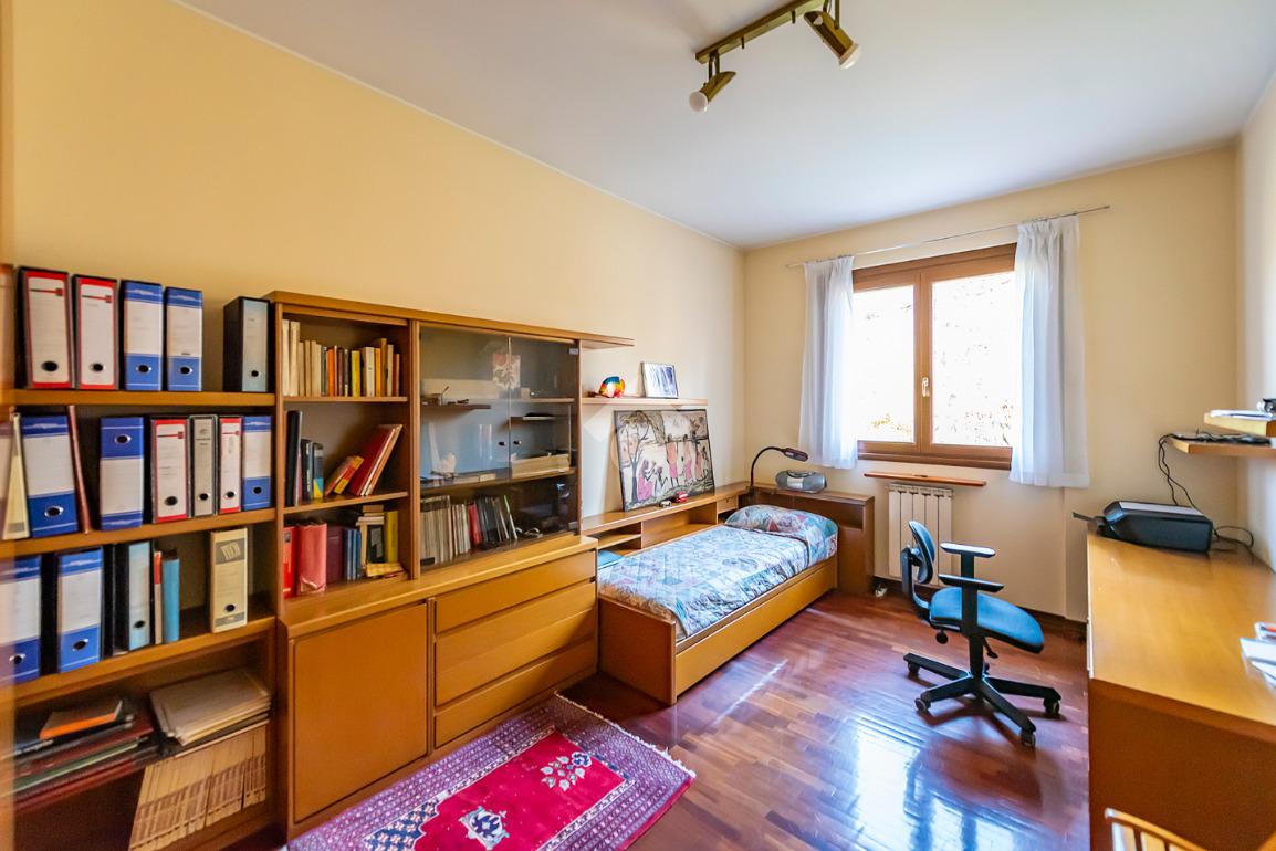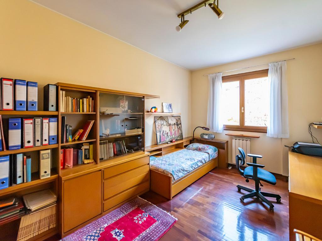Al primo piano si sviluppa la zona notte, composta da una camera matrimoniale, due camerette, un bagno di grandi dimensioni finestrato e un secondo bagno cieco, offrendo comfort e praticità per tutta la famiglia.