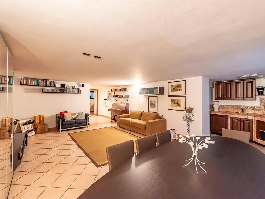 La villa si sviluppa su più livelli e offre una luminosa zona giorno con salone doppio affacciato sul giardino privato, cucina abitabile, camere spaziose e tripli servizi. Gli ambienti, ben distribuiti e funzionali, garantiscono un'atmosfera accogliente e raffinata, perfetta per la vita familiare e per momenti di convivialità. Completa la proprietà un ampia taverna e un box auto.