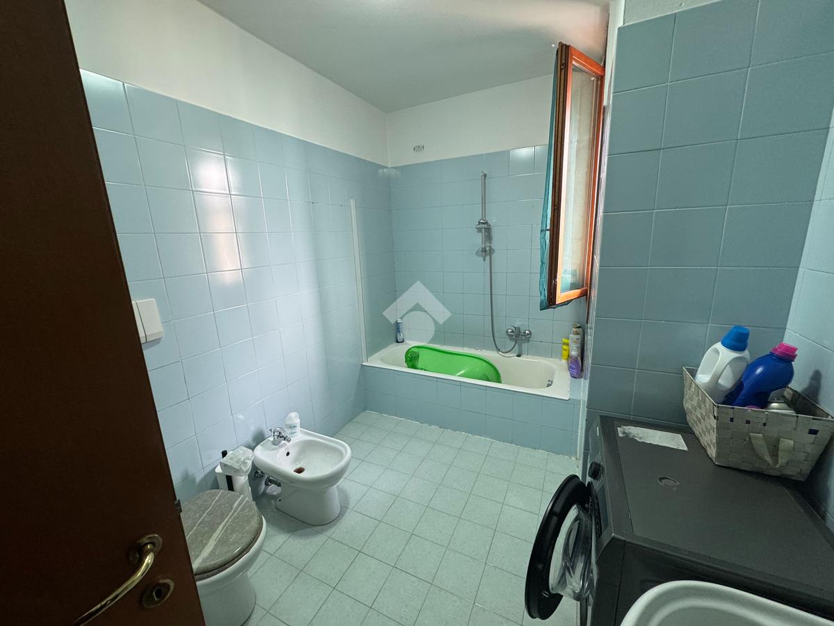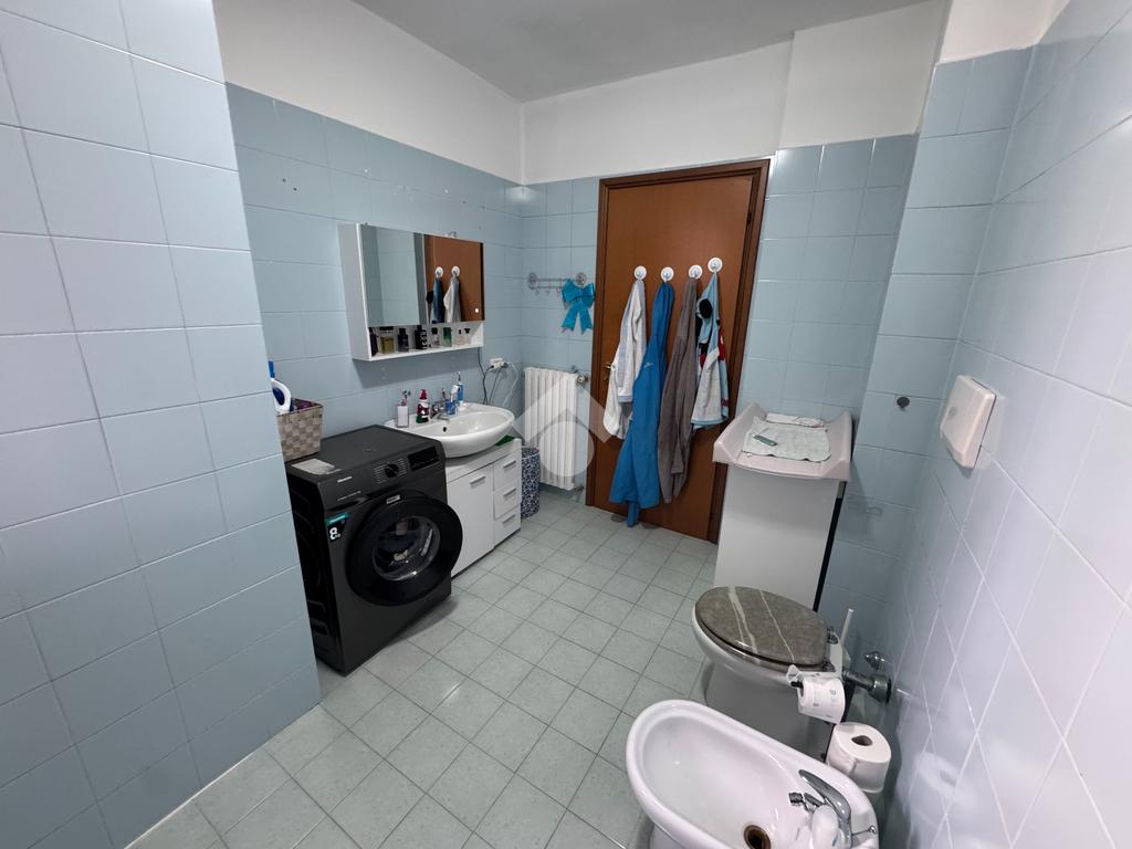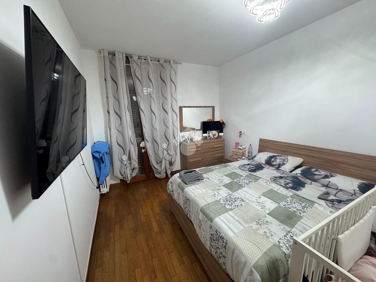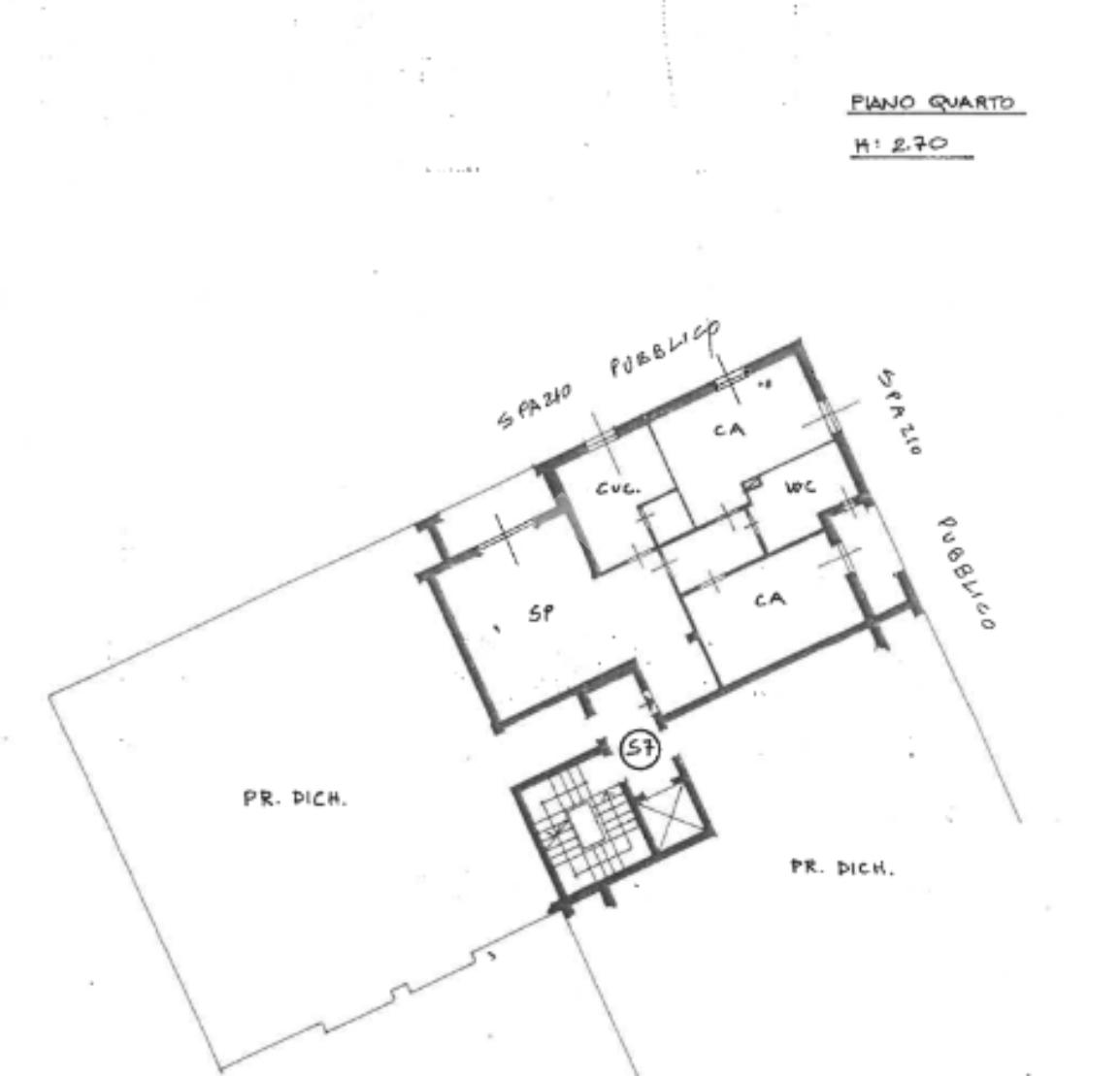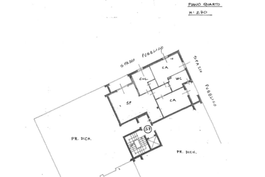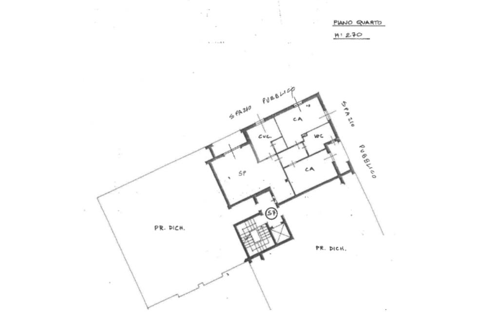 L'abitazione, al piano quarto servito da ascensore, è composta da ingresso, soggiorno, cucina abitabile con ripostiglio, due camere da letto, bagno e due la presenza della portineria. A completamento un vano ad uso cantina al piano interrato.